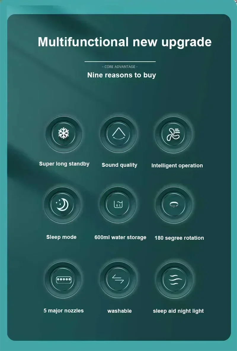 Ajusta fácilmente la velocidad del viento y el modo de pulverización según tus necesidades, con 3 niveles de viento y 3 modos de niebla. Su funcionamiento silencioso permite usarlo incluso durante la noche para dormir cómodamente. Solo conéctalo a cualquier puerto USB, como computadora, cargador de pared, powerbank o cargador de coche, y disfruta de un aire fresco y humectado de manera económica y ecológica.